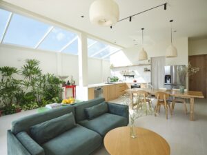 Nhà của bạn nhỏ đồng nghĩa với việc bạn không thể bố trí nhiều khu vực chức năng riêng biệt như những không gian lớn khác. Chẳng hạn như bạn có một căn bếp vậy hãy nối liền chúng với phòng khách thay vì xây những bức tường ngăn cách. Và ở một góc nhỏ có thể đặt chiếc bàn để làm nơi làm việc, như vậy sẽ giúp tận dụng diện tích tốt hơn, tránh được các góc chết và lãng phí không gian trong nhà.