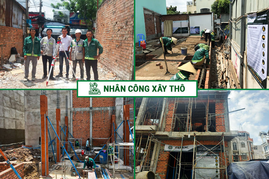Nhân công xây nhà phần thô là nhân công sẽ làm từ phần thô phần khung nhà gồm các công tác sau: