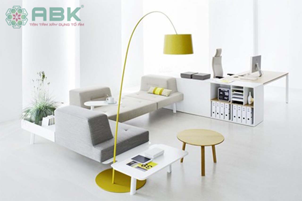 Bên cạnh đó, với sự kết hợp của màu xanh dượng nhạt với màu trắng sữa sẽ giúp tạo điểm nhấn cho căn phòng làm việc của bạn thêm hiện đại và tinh tế.