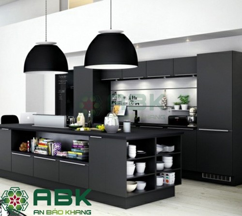 Ngoài màu xanh dương thì màu đen cũng rất phù hợp với phong thủy tuổi Quý hợi 1983. Với nội thất bếp bao phủ một màu đen bóng từ tủ, kệ, đền chùm cho đến bàn ăn… thể hiện khí chất sang trọng và mạnh mẽ đầy tìm lực của gia chủ. Nhưng ngược lại vật liệu của chúng là gỗ thuộc hành Mộc nên mọi thứ được ôn hòa và hỗ trợ cho nhau.