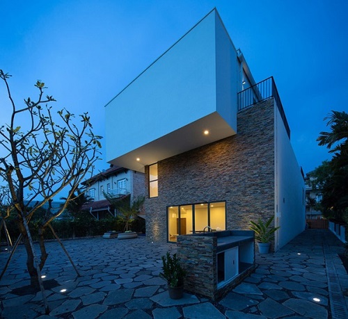 Đây là căn biệt thự độc đáo và hiện đại nhất được trang Trendir – tạp chí chuyên đánh giá về nhà đẹp miêu tả là “Ngôi nhà được thiết kế theo lối tư duy tối giản, các hình khối sắc sảo với những đường nét gọn gàng. Mặt tiền của căn biệt thự gồm hai khối hình vuông được gắn lồng vào nhau cùng một kết cấu độc đáo, thú vị thể hiện sự sang trọng, đẳng cấp thượng hạng.” Trang này cũng phân tích rất kỹ về kết cấu cũng như ý tưởng thiết kế của kiến trúc sư.