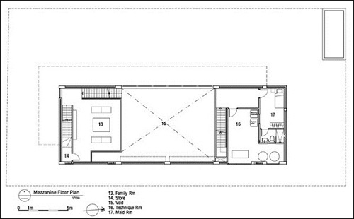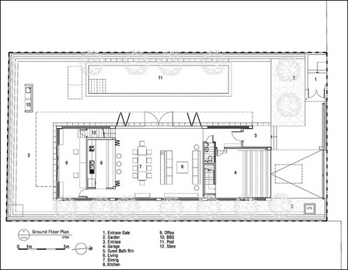 Mặt cắt tầng trệt của biệt thự. Gia chủ có thể vào tầng trệt từ hai lối: qua gara hoặc qua chiếc cổng ngay bên cạnh.