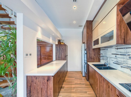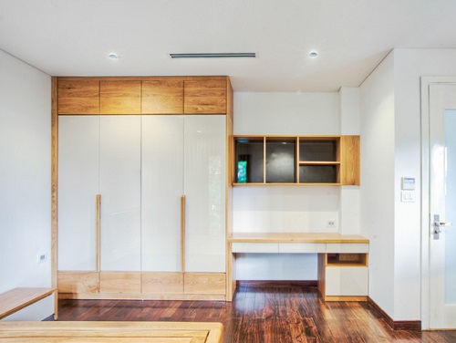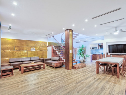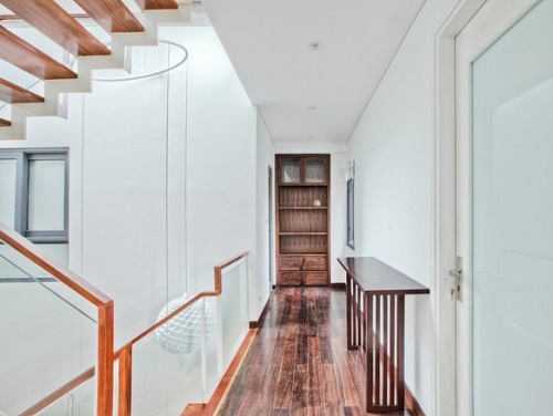 Tổng thể căn biệt gồm có 4 tầng sử dụng chất liệu nội thất chính là gỗ. Với tông màu chủ đạo là màu trắng, màu ghi, màu đen được bố trí xuyên suốt tạo cảm giác hiện đại và sang trọng. Bên cạnh đó với việc bố trí không gian các phòng hợp lý tạo nên không gian sống đẳng cấp và tiện nghi cho các thành viên trong gia đình.
