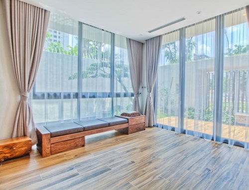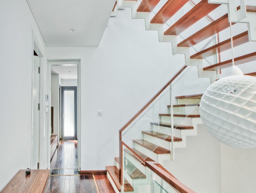 Nhìn từ bên ngoài căn biệt thự toát lên dáng vẻ hiện đại và xanh mát với tông màu chủ đạo là màu trắng, màu ghi, màu đen và màu gỗPhần sân vườn của biệt thự xanh mát với hệ thống cây xanh, bể cá cảnh và những viên gạch với kích cỡ khác nhau đặt trong bể cá tạo thành lối đi độc đáo. Bên cạnh đó với cây tùng khá lớn tạo nên vẻ bề thế cho căn thự.Lối đi vào căn biệt thự được lát gỗ mang đến cảm giác tự nhiên và gần gũi. Đặc biệt với sự kết hợp khéo léo với màu sắc tường và cửa kính trong suốt không hề tạo cảm giác nặng nềKhông gian của tầng 1 là nơi bố trí phòng khách, phòng bếp và phòng ănPhòng khách bố trí sàn gỗ và một bộ bàn ghế bằng gỗ. Bàn ghế được đặt dựa sát vào trong tường kết hợp với việc đặt cạnh cửa kính mang đến không gian tiếp khách, trò chuyện thoáng đãngĐiểm nhấn của không gian phòng khách còn nằm ở khoảng tường vàng phía sau với họa tiết đàn cá bơi lộiKhu tiếp khách với hai phần thoáng và ngập tràn ánh nắng mặt trời bên ngoài khi đặt gần hệ thống cửa kính và có thể phóng tầm mắt ra khoảng cây xanh mát ở sân vườnBàn ăn với chất liệu gỗ, dài và rộng được đặt ở gần cửa kính giúp phòng ăn thoáng đãngThiết kế của căn bếp gọn gàng với nội thất hiện đại và được đặt gần khu vực của phòng ănDiện tích của căn phòng ngủ khá là rộng, với hướng nhìn ra phía bên ngoài mang đến không gian sáng và thoáng cho cả căn phòngNgoài phòng ngủ, tầng 2 còn được bố trí không gian của phòng làm việc và một không gian nghỉ ngơi chung cho các thành viên trong gia đìnhPhòng tắm được bố trí ở trong phòng ngủ chính rộng rãi, thoáng đãng và tiện nghi Lối lên tầng 3 sử dụng chất liệu gỗ sồi và kính trong suốt tạo cảm giác sang trọng và hiện đạiCận cảnh căn biệt thự 2 tầng 110m2 – Phòng ngủ cho con cái ở trên tầng 3. Thiết kế phòng ngủ đơn giản và hiện đại với chất liệu làm bằng gỗ sồiCận cảnh căn biệt thự 2 tầng 110m2 – Phòng vệ sinh bố trí ở trong phòng ngủ. Nội thất tiện nghi tạo cảm giác thông thoáng và hiện đạiCận cảnh căn biệt thự 2 tầng 110m2 – Đặc biệt ở không gian tầng 3 có bố trí một khoảng vườn xanh mát. Đây trở thành không gian nghỉ ngơi, thư giãn thoáng đãng trong nhàCận cảnh căn biệt thự 2 tầng 110m2 – Tầng 4 được bố trí làm không gian phòng thờ và một khoảng sân thông thoáng phía bên ngoài.