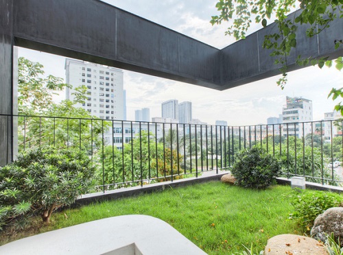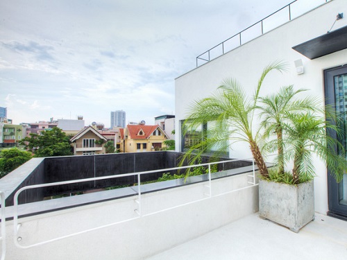 Với khoảng sân tầng 4 này được ốp bằng đá granito rất sạch và thoáng. Gia chủ đặt vào đây một chậu cây vào đây để tô điểm cho không gian thêm xanh. Ngoài ra cũng có thể đặt vào đây một bộ bàn ghế, vừa làm nơi nghỉ ngơi thư giãn uống trà vừa tạo không gian trò chuyện cho các thành viên trong gia đình.