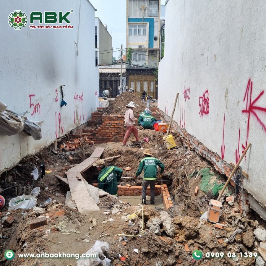 Giai đoạn móng được ABK thi công theo đúng hồ sơ khảo sát địa chất và tiêu chuẩn kết cấu trong bộ 29 tiêu chuẩn kỹ thuật. Đội ngũ kỹ sư túc trực kiểm tra từng công đoạn từ ép cọc, đào móng đến đổ bê tông, đảm bảo nền móng vững chắc cho toàn bộ công trình về sau.