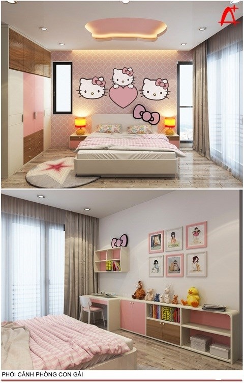 Phòng ngủ bé gái lựa chọn tông màu nhẹ nhàng, nữ tính