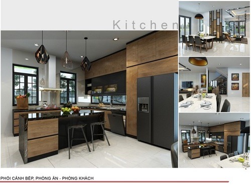 Phòng bếp và phòng ăn được bố trí liền kề với nhau