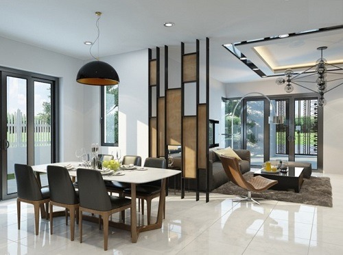 Hệ thống cửa sử dụng cho toàn bộ căn biệt thự song lập là cửa kính, tôn lên vẻ hiện đại nhưng đồng thời cũng đóng vai trò quan trọng trong việc tiếp nhận nguồn ánh sáng tự nhiên từ phía bên ngoài.
