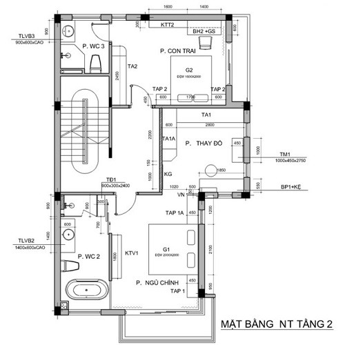 Khu vực tầng 2 sẽ bố trí không gian 2 phòng ngủ, phòng ngủ chính và phòng ngủ cho bé trai