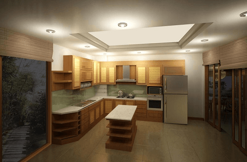 Để tạo nên sự hài hòa giữa các không gian phòng bếp cũng sử dụng chủ yếu nội thất bằng gỗ với thiết kế đơn giản, tạo nên sự tiện lợi trong quá trình sử dụng