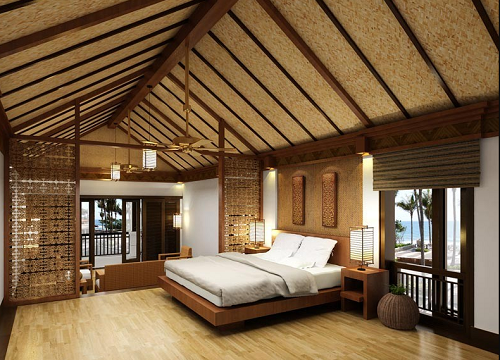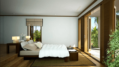 Phòng ngủ với lối thiết kế đơn giản, hướng tầm mắt nhìn ra phía biển. Đây là điểm thú vị mà chỉ những căn biệt thự ven biển mới có