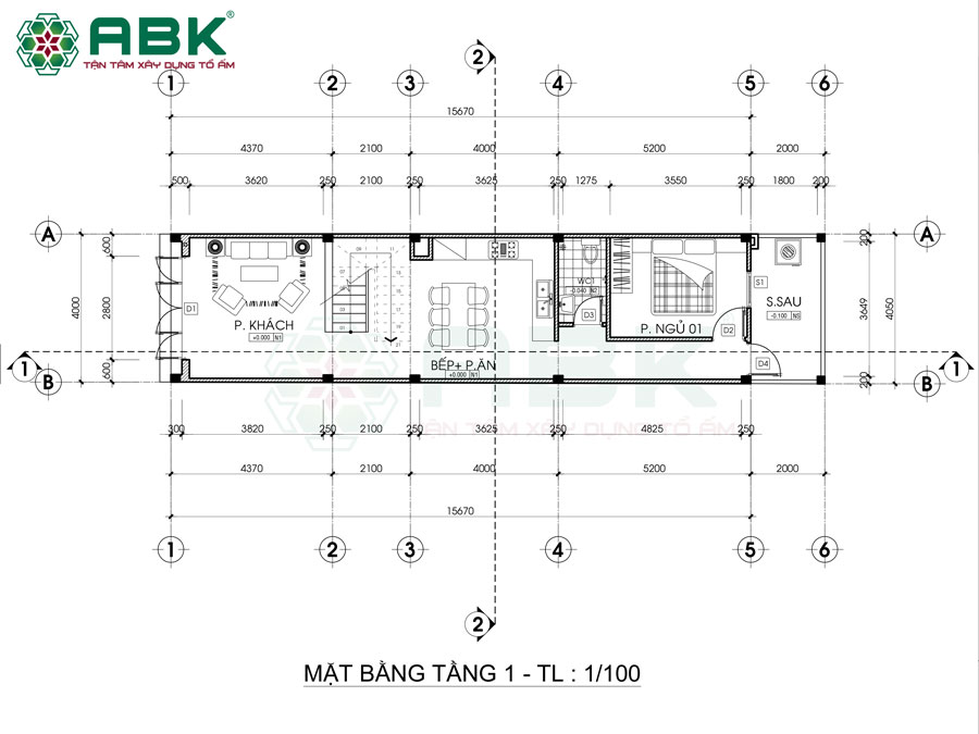 Bố trí mặt bằng tầng 1 nhà anh Bảng