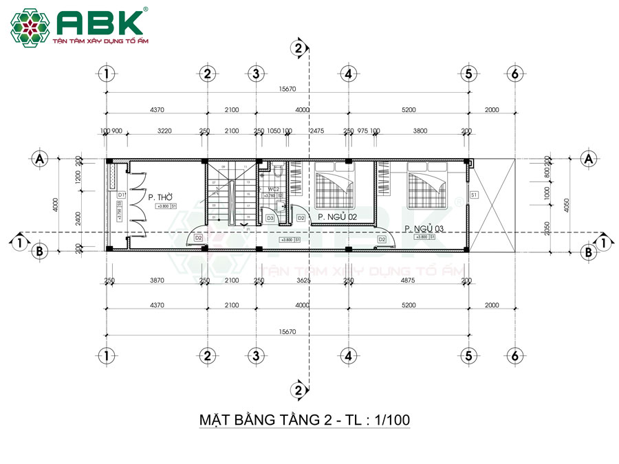 Bố trí mặt bằng tầng 2 nhà anh Bảng