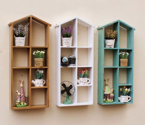 Những chiếc kệ tủ được treo trên những bức tường, để trưng bày những món đồ vật trang trí độc đáo