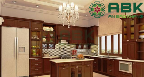 Phòng bếp được thiết kế với chất liệu gỗ cao cấp