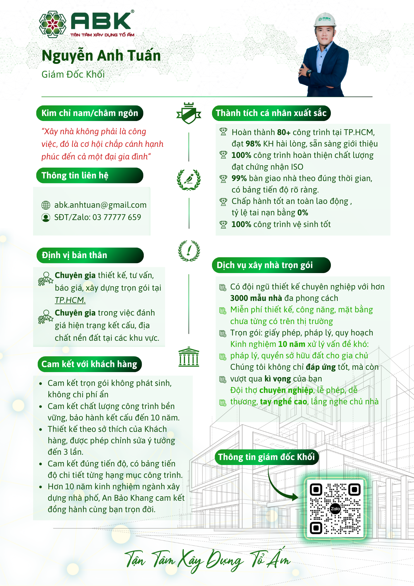 – Trao đổi, nắm nhu cầu của khách hàng, tư vấn các thông tin về pháp lý, thời gian, đơn giá, gói xây dựng,…, thiết kế lên dự toán gửi khách hàng.