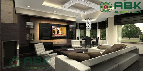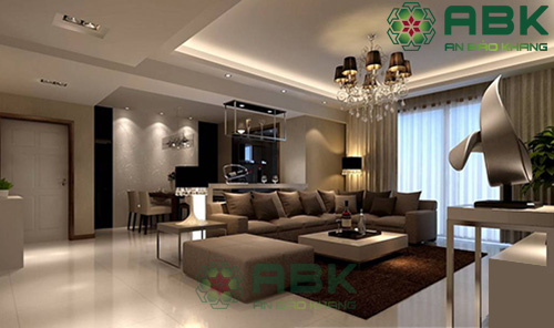 – Màu sắc: Tông màu trầm ấm mang tới vẻ đẹp sang trọng, quý phái, là lựa chọn hàng đầu khi thiết kế phòng khách. Tổng thể sử dụng chất liệu gỗ theo tông mà nâu cổ điển là xu hướng nội thất chưa bao giờ lỗi thời. Tuy nhiên, nếu lạm dụng gam màu tối nhiều sẽ dẫn đến không gian khá buồn và tẻ nhạt. An bảo Khang gợi ý dành cho Quý khách là kết hợp thêm một số loại đèn sáng màu và đèn chùm để tạo thêm điểm nhấn.