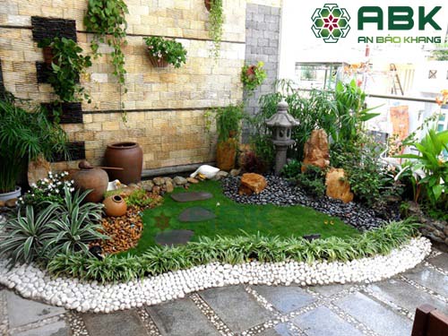 – Đối với nhà phố có diện tích nhỏ hẹp chúng ta nên bố trí những mảng trang trí hợp lý, kết hợp một ít cây xanh để tạo nên một không gian trong lành.– Đối với nhà có diện tích sân vườn lớn chúng ta có thể thiết kế cảnh quan gồm: Nước, đá và cây xanh.. Sân vườn được làm và trang trí từ vật liệu đá như tường rào, đá lát, tiểu cảnh,…là cách đơn giản để có một khu vườn đẹp theo phong cách Phương đông.