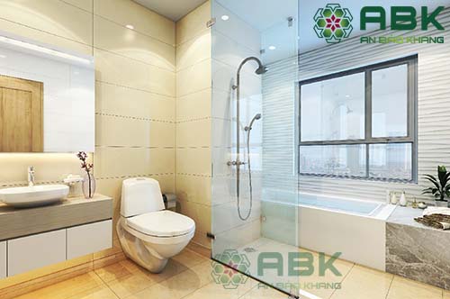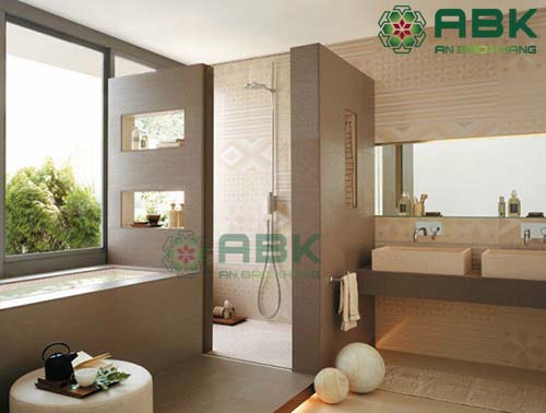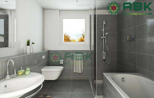 – Vật liệu ốp lát cho phòng vệ sinh: Gạch nền Quý khách nên chọn loại gạch nhám chống trượt kích thước 250×250 hoặc 300×300 không nên chọn gạch có kích thước lớn vì sẽ ảnh hưởng đến độ dốc khi thi công. Gạch ốp tường nên chọn loại có hoa văn nhẹ nhàng hoặc kết hợp gạch đậm nhạt cắt len tạo điểm nhấn cho phòng vệ sinh.
