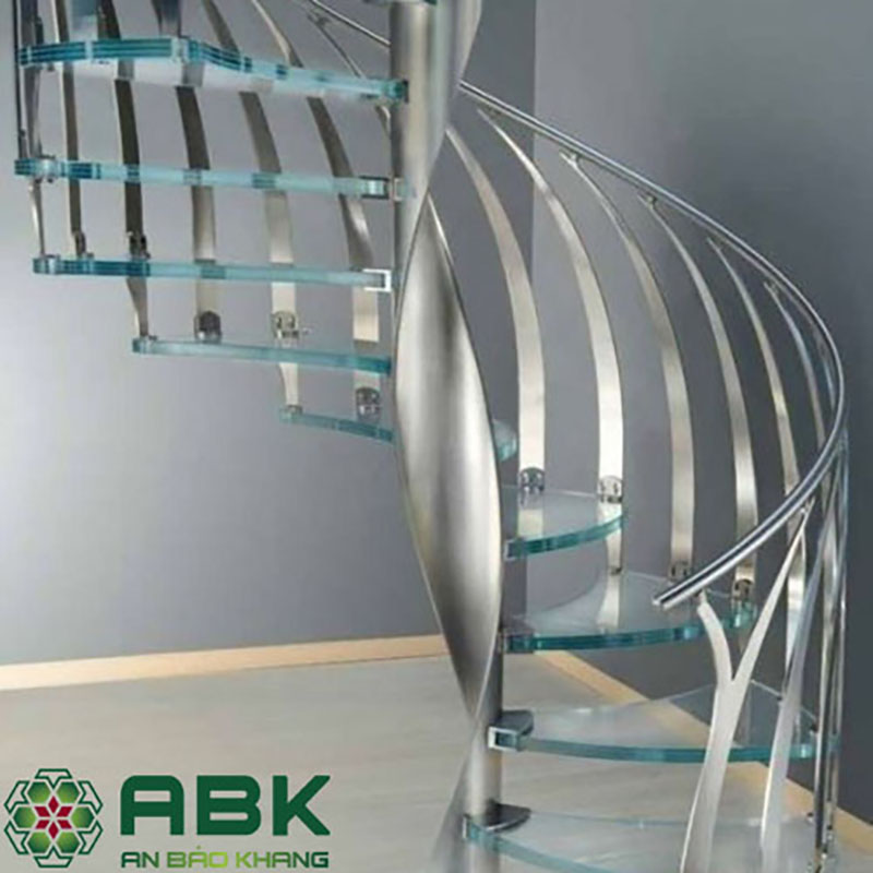 Cầu thang xoắn ốc kính cường lực, khung inox độc đáo