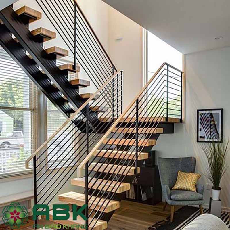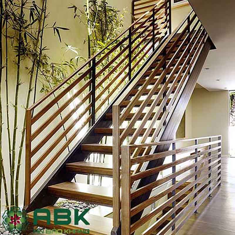 Cầu thang gỗ khung sắc thẩm mỹ chắc chắn an toàn