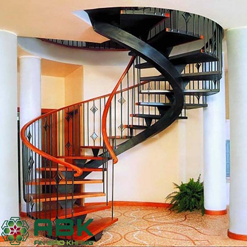 Cầu thang gỗ khung sắc xoắn ốc nhỏ gọn