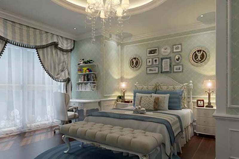 Nội thất phòng ngủ trong thiết kế biệt thự kiểu cổ điển không thể thiếu rèm vải trang trí