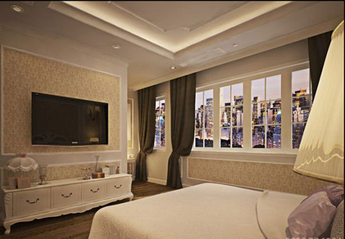 Phòng ngủ trang trọng với cửa sổ ngắm nhìn bên ngoài