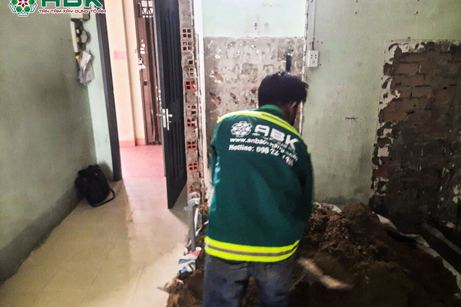Sau khi thống nhất các yêu cầu sửa chữa nhà từ gia đình anh Khoa, đội thợ thi công An Bảo Khang tiến hành các công tác tháo dỡ, vận chuyển xà bần, chuẩn bị vật tư tiến hành thi công các hạng mục trong hợp đồng sửa nhà.