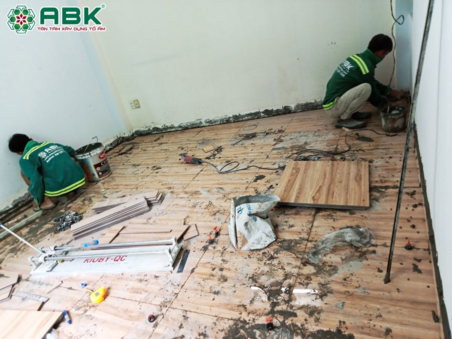 Thi công ốp lát gạch phòng ngủ tầng 1