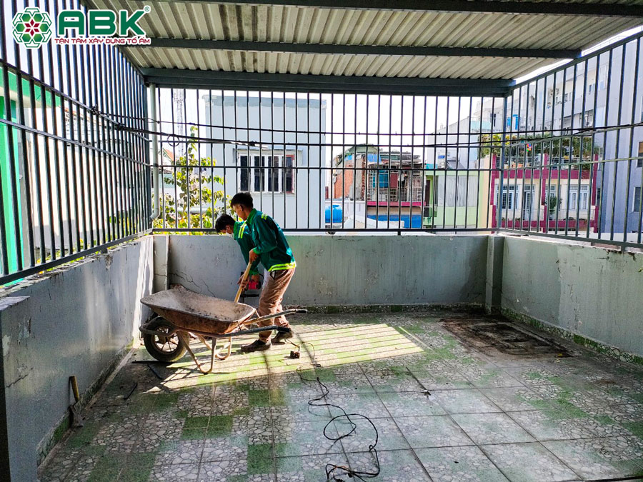 Sau khi tập kết đầy đủ vật tư và nhân công An Bảo Khang Group tiến hành thi công sửa chữa cải tạo nhà cho anh Vũ. Bắt đầu với công tác tháo dỡ, phát bỏ những phần trong hạng mục thi công để tiến hành cải tạo.