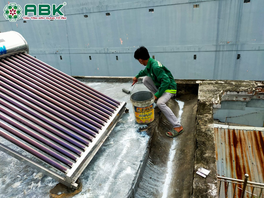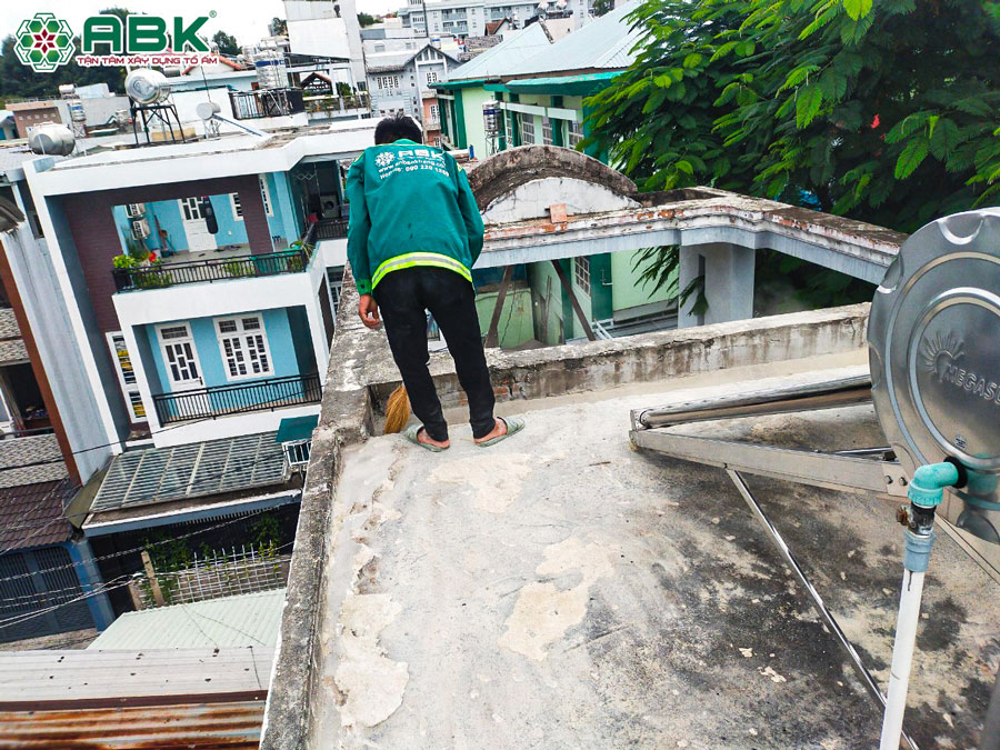 Thi công vệ sinh phần mái để tiến hành chống thấm