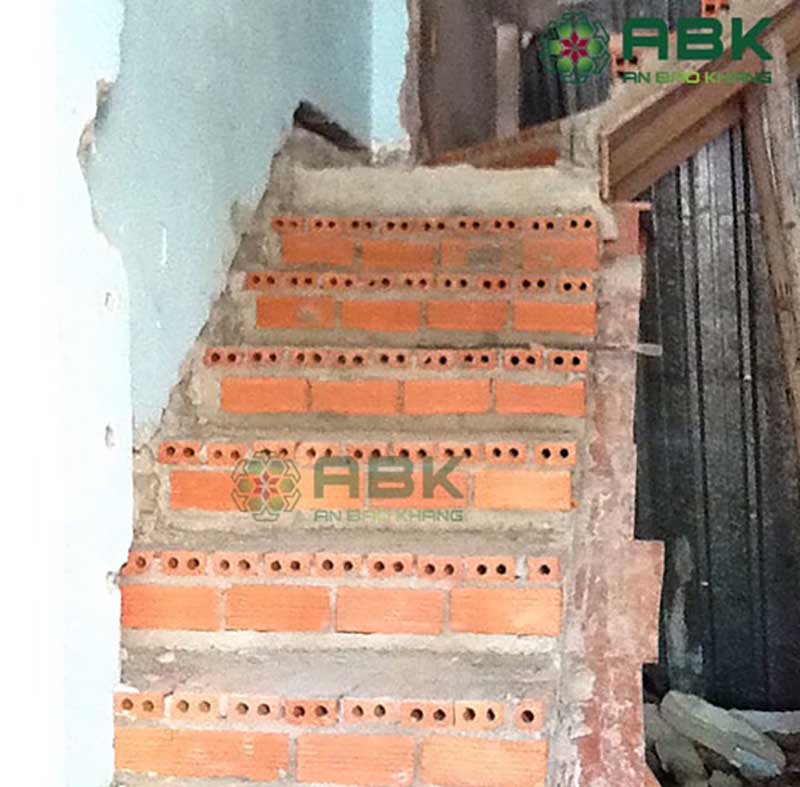 • Công tác đập bỏ để làm mới hoàn toàn cầu thang trệt lên lầu 1 (mở rộng bản thang)