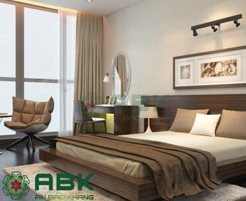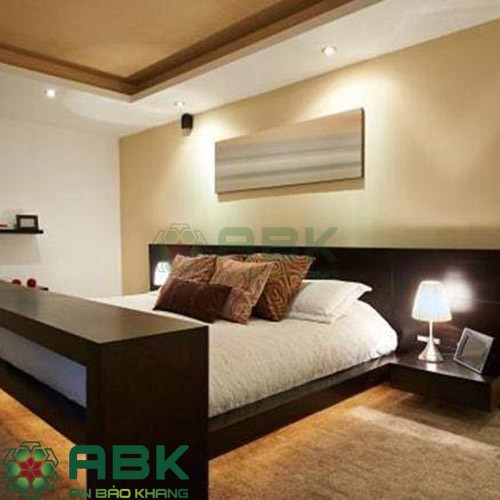 Ngoài thiết kế phòng khách, phòng bếp và phòng ngủ có cửa kính như trên thì việc thiết kế phòng ngủ thiếu ánh sáng tự nhiên cũng rất thường xảy ra. Như vậy việc bố trí thêm đèn led, cũng như đèn trùm và đèn ngủ là hết sức cần thiết. Cùng với sự kết hợp nhẹ nhàng của tông màu tường và gối nệm tạo cảm giác nhẹ nhàng, ấp áp, thỏa mái hơn khi ngủ.
