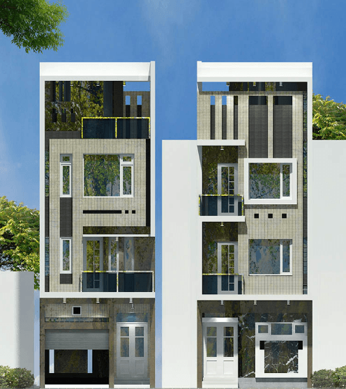 Sau đây là chi tiết mẫu thiết kế xây dựng nhà 4 tầng trước sau: