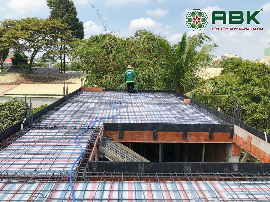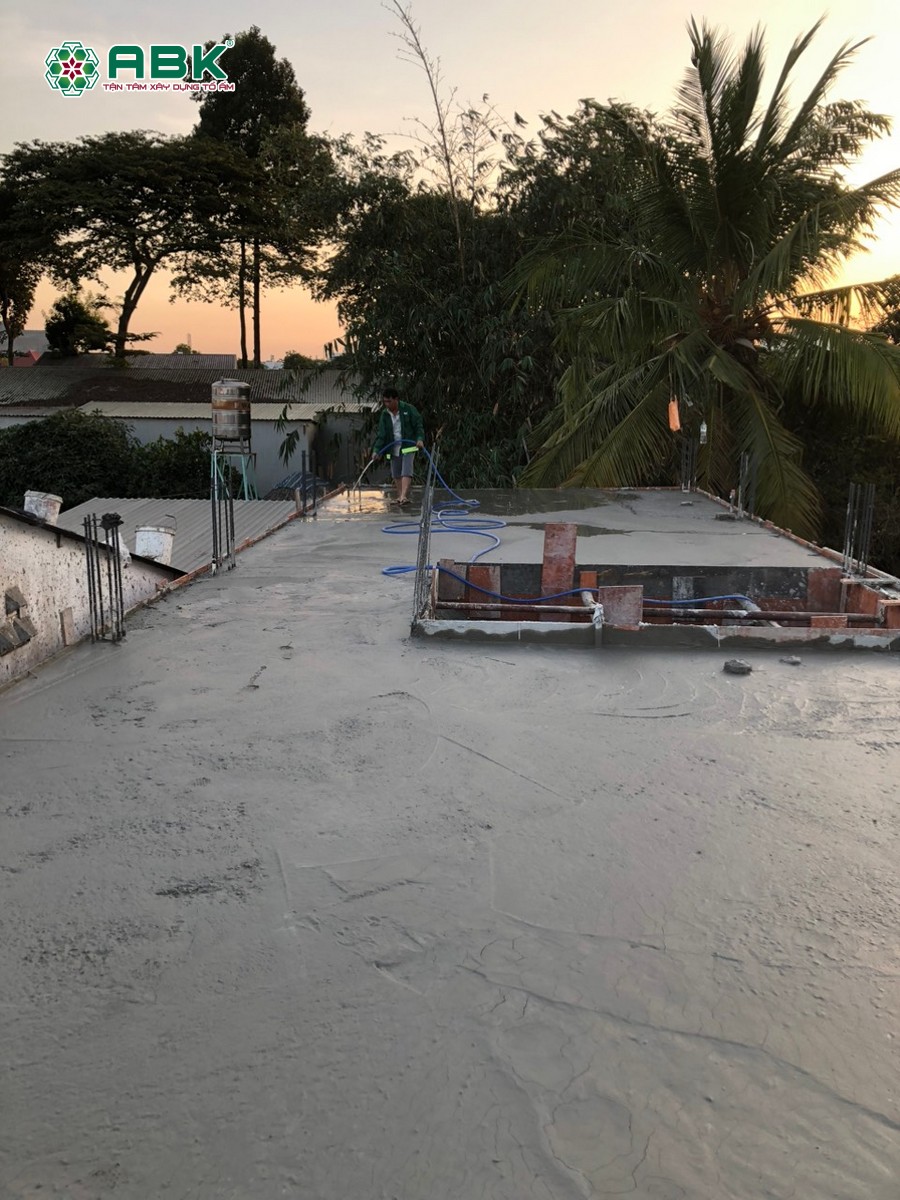 Công tác đổ bê tông sàn lầu 1 đã hoàn thành, kế tiếp là tiến hàng bảo dưỡng bê tông sàn lầu 1 – Ảnh 1