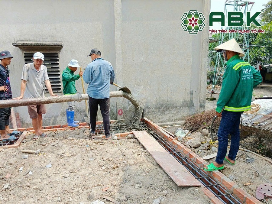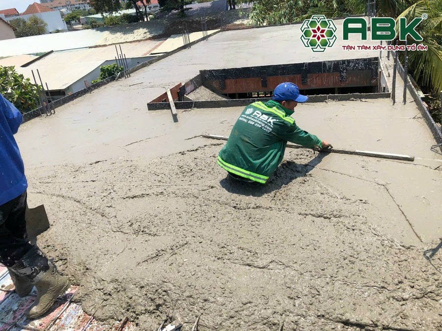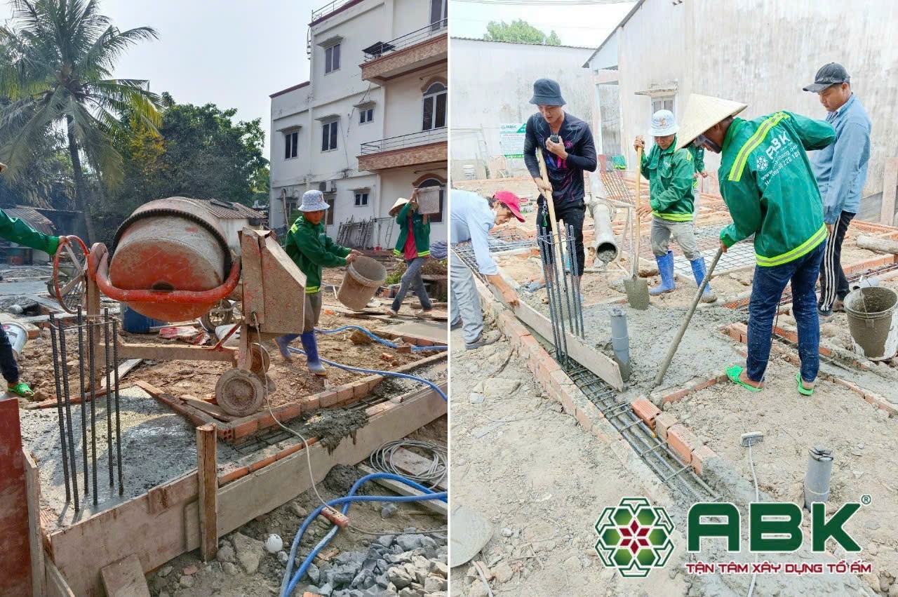 đội ngũ công nhân viên An Bảo Khang thi công công tác đổ bê tông sàn lầu 1
