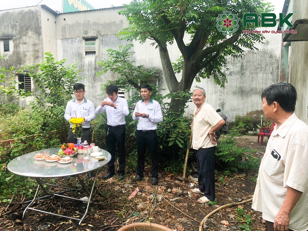 đội ngũ Xây Dựng An Bảo Khang tiến hành cúng khởi công tại công trường nhà anh Thu – Quận 9